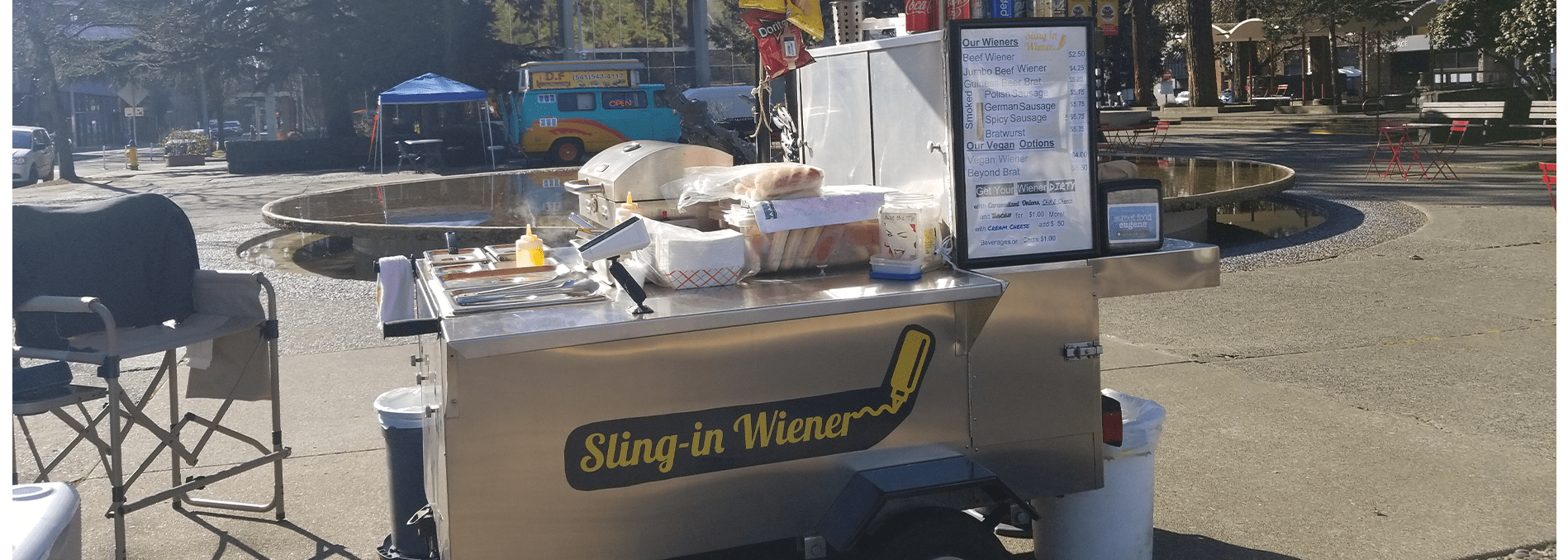 Sling-in Wiener is a mobile hot dog stand that serves classic American hot dogs in Eugene, OR. We are a family-owned and operated business that is passionate about our food. We have many years of experience in the food industry and have decided to put those years into starting a fast-food stand of our own so that we can share our amazing flavors with everyone. We steam our wieners before grilling them so that they are full of flavor and maintain the rich, 100% beef flavor of a classic American hot dog. We have many options available on our hot dog pushcart.